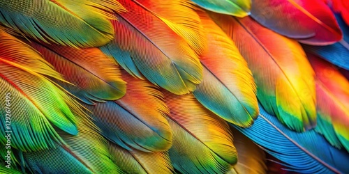 Fototapeta premium Delicate bird feathers in close-up, showcasing vibrant colors and intricate patterns, nature, colorful
