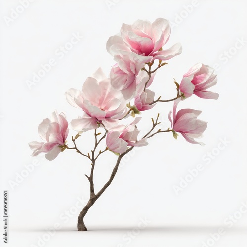 © Rungtiwa, Obraz premium Delicate Blooming Magnolia Branch with Soft Pink Petals in Focus