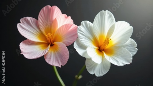 © Angel Pic, Obraz premium Delicate Blooms in Soft Pastel Hues, a Study in Contrast and Botanical Elegance