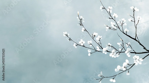 © Andisucijaya, Obraz premium Delicate blossoms against a muted sky.