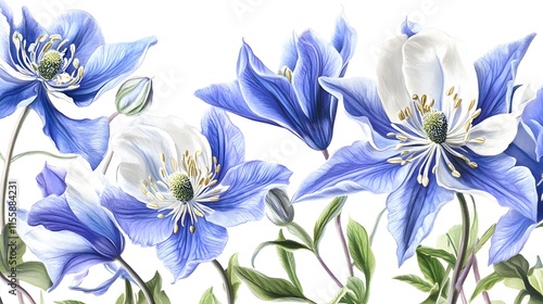 © irawan, Obraz premium Delicate Blue and White Clematis Flowers in Bloom