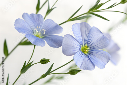 © Mustafa Khan, Fototapeta premium Delicate Blue Flax Flowers in Bloom on White Background