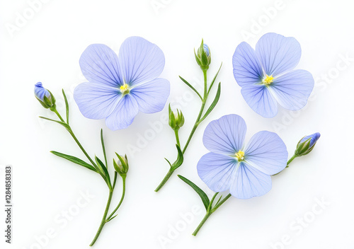 © Floral, Naklejka premium Delicate blue flowers with buds on a white background.