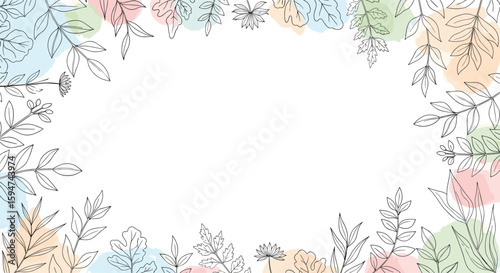 Obraz premium Delicate botanical border with soft pastel watercolor circles for artistic...