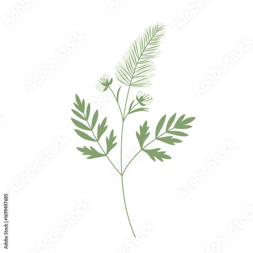 © Photo, Fototapeta premium Delicate botanical illustration of a flowering plant with unique foliage isolated on white background