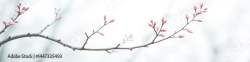 © Patchanee, Fototapeta premium Delicate branch against crisp white background, winter, branches, clean
