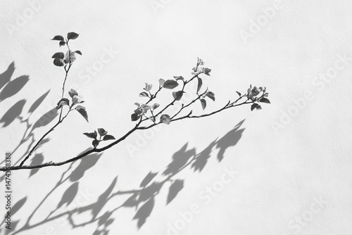 © MySamLobatobrock, Naklejka premium Delicate branch casts shadows on a light surface