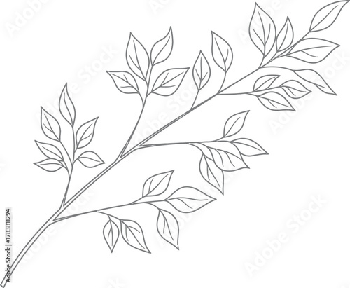 Fototapeta premium Delicate branch with leaves, creating a clean and simple botanical illustration for various design and artistic applications