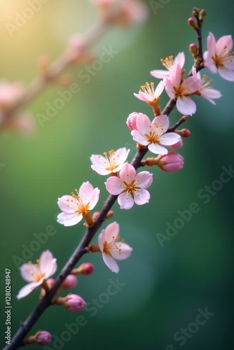 © Pongpob, Obraz premium Delicate branch with tiny, pastel-colored flowers, foliage, tree, delicate