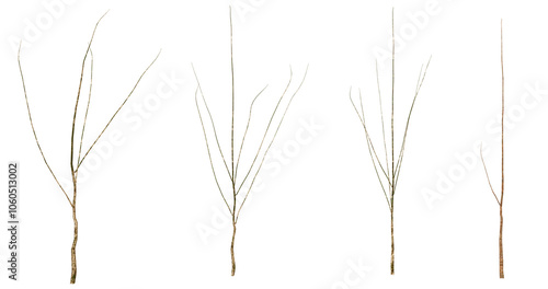 © omkuhh, Obraz premium Delicate branches striking through the night sky, capturing nature's quiet elegance in a serene moment of reflection