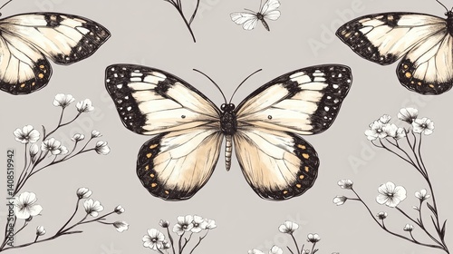 Obraz premium Delicate butterfly and flower pattern design.