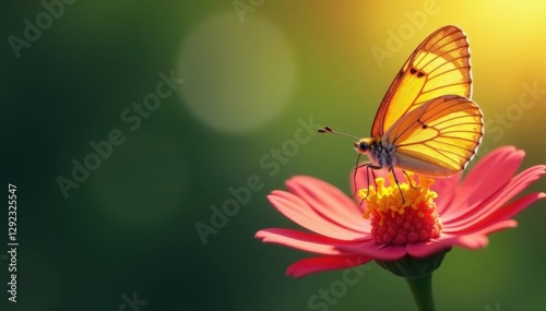 Fototapeta premium Delicate butterfly perched on vibrant wildflower, sunlight dappled wings,...