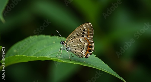 © SRRiadi, Obraz premium Delicate Butterfly Resting on Green Leaf in Natural Habitat Close-up