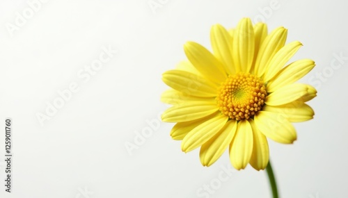 © tpadobestock, Naklejka premium Delicate chamomile flower, vibrant yellow petals, white background, soft, natural, fresh