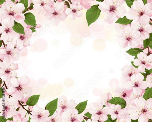 © adince, Obraz premium Delicate cherry blossom border in soft pinks and whites, evoking a peaceful, gentle atmosphere