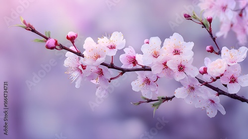 Fototapeta premium Delicate Cherry Blossom Branch with Soft Purple Background