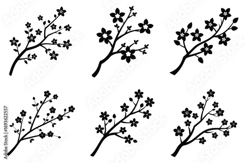 Naklejka premium Delicate Cherry Blossom Branches Floral Icon Set