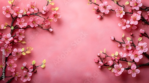 © Selene Studio, Obraz premium Delicate Cherry Blossom Branches on Soft Pink Background