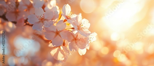 Fototapeta premium Delicate cherry blossom flowers in warm sunlight, creating a dreamy and...