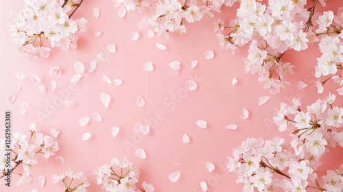Fototapeta premium Delicate Cherry Blossom Petals on Soft Pink Background