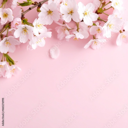 © Akal, Fototapeta premium Delicate cherry blossoms on a pastel pink background