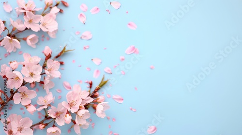 © Creative Workflow., Fototapeta premium Delicate cherry blossoms on blue background