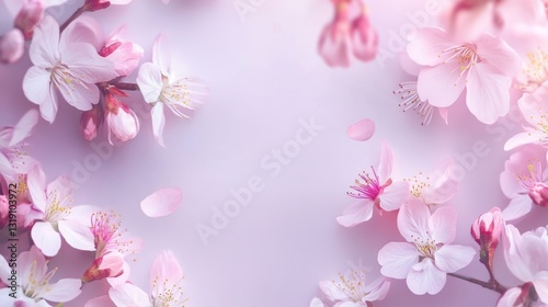 © mas, Fototapeta premium Delicate Cherry Blossoms on Pastel Background. Possible use Spring, nature, beauty, and peace