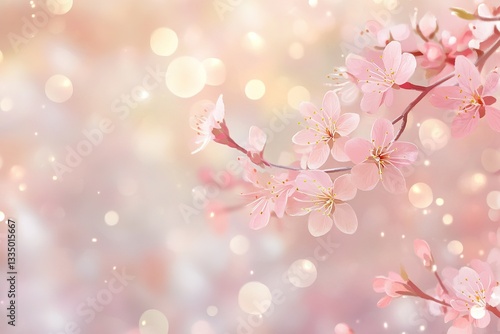 Fototapeta premium Delicate cherry blossoms with soft bokeh lights creating a dreamy romantic atmosphere
