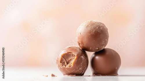 © MAKASIHMAS SIDNEY, Fototapeta premium Delicate chocolate truffles stacked on a white surface