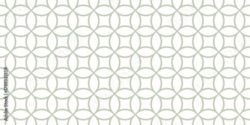 © Olgastocker, Fototapeta premium Delicate circular grid seamless pattern. Simple minimal vector ornament texture with circle mesh, net, lattice, curved lines. Abstract green and white geometric background. Repeating minimalist design