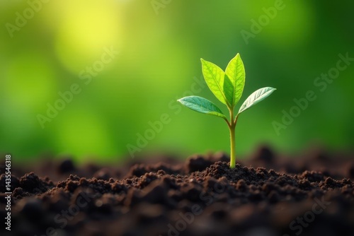 Naklejka premium Delicate coffee plant sprouts emerge, surrounded by rich green leaves ,...