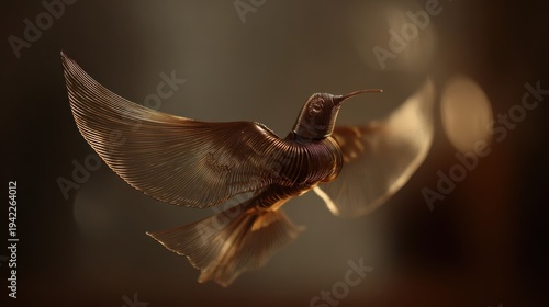 © Udang Harimau , Fototapeta premium Delicate Copper Wire Hummingbird Sculpture Artfully Twisted into Flight