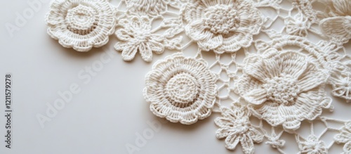 © Mehemmed, Obraz premium Delicate cream crochet motifs arranged artistically on a soft beige background highlighting intricate lace patterns and exceptional craftsmanship