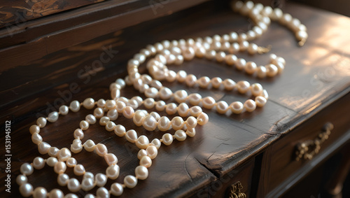 © BILAL, Obraz premium delicate creamy white pearl necklace lie ai genrative