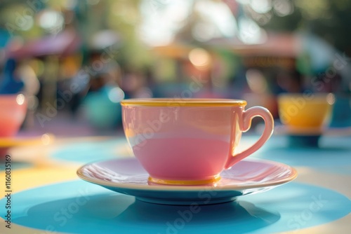 Obraz premium Delicate cup with vibrant colors sits elegantly on patterned tab