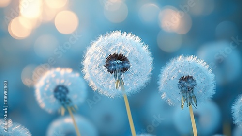 Obraz premium Delicate dandelion flowers with ethereal, blurred backgrounds create a sense...