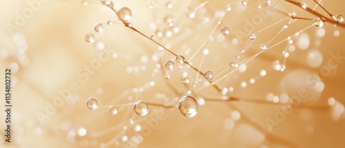 © Ai Studio, Obraz premium Delicate dew drops glisten on thin branches against a soft, golden background, creating an ethereal and dreamy visual.