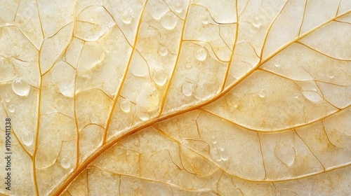 © Rere_Art151, Obraz premium Delicate Dried Leaf Veins Glistening With Dewdrops