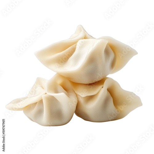 Obraz premium Delicate dumplings stacked on a white background, perfect for culinary...