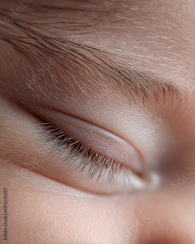 © rinrada, Obraz premium Delicate eyebrows of a newborn baby captured in macro under soft light.