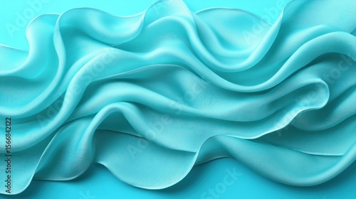 © Tetyana, Fototapeta premium Delicate fabric flows smoothly, undulating softly against a bright turquoise backdrop