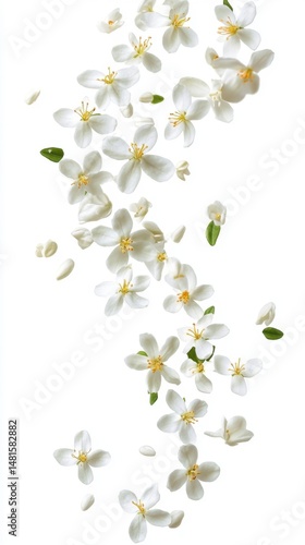 © DriftPixels, Fototapeta premium Delicate Falling Orange Blossoms on White Background Overhead View Floral Arrangement Nature Springtime