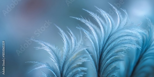 Obraz premium Delicate fern like frost patterns forming on a window pane, creating an...
