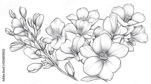Fototapeta premium Delicate floral arrangement coloring page featuring intricate blossoms and buds for creative expression