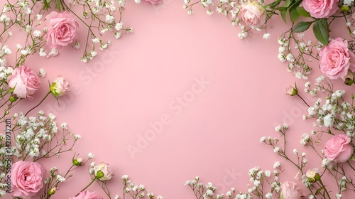 Fototapeta premium Delicate floral arrangement in a pastel pink border.