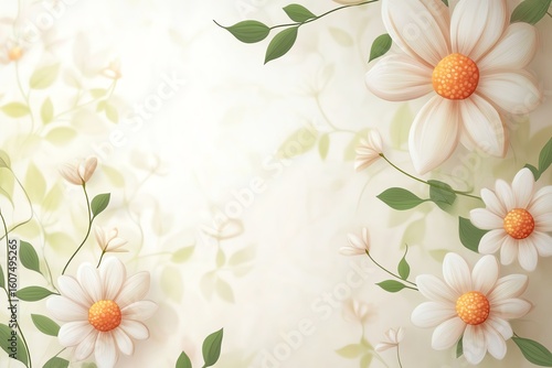 © tammarat, Fototapeta premium Delicate floral border with daisies and leaves