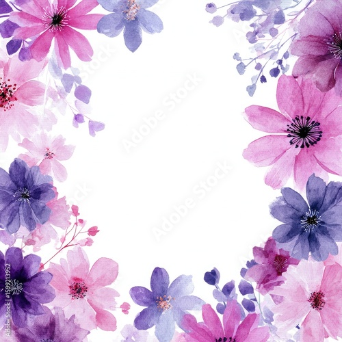 © Mutiahandikhalisa, Fototapeta premium Delicate floral frame in shades of pink and purple