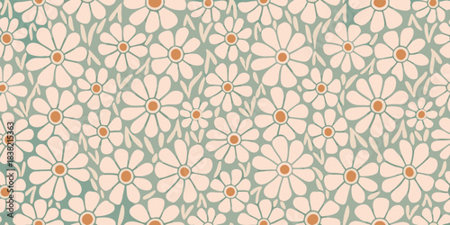 © Tusar, Fototapeta premium Delicate floral pattern with repeating white daisies and muted green foliage