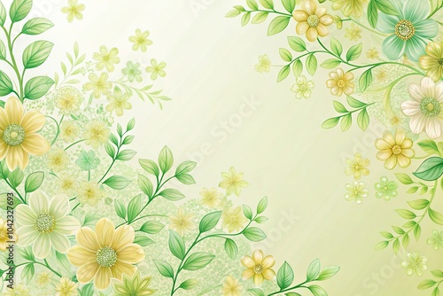 Fototapeta premium Delicate floral patterns in pastel yellow and green background