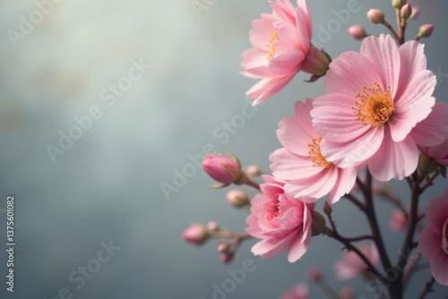 © Supagorn, Obraz premium Delicate florals in soft grey tone , botanical, nature